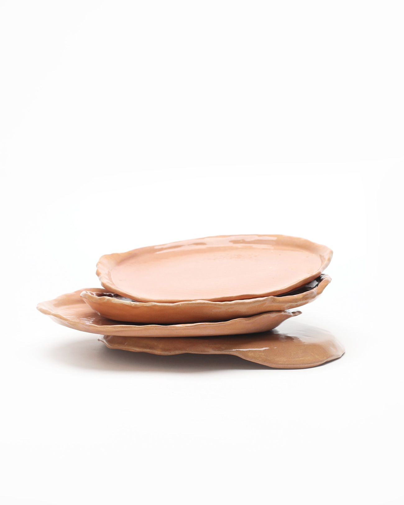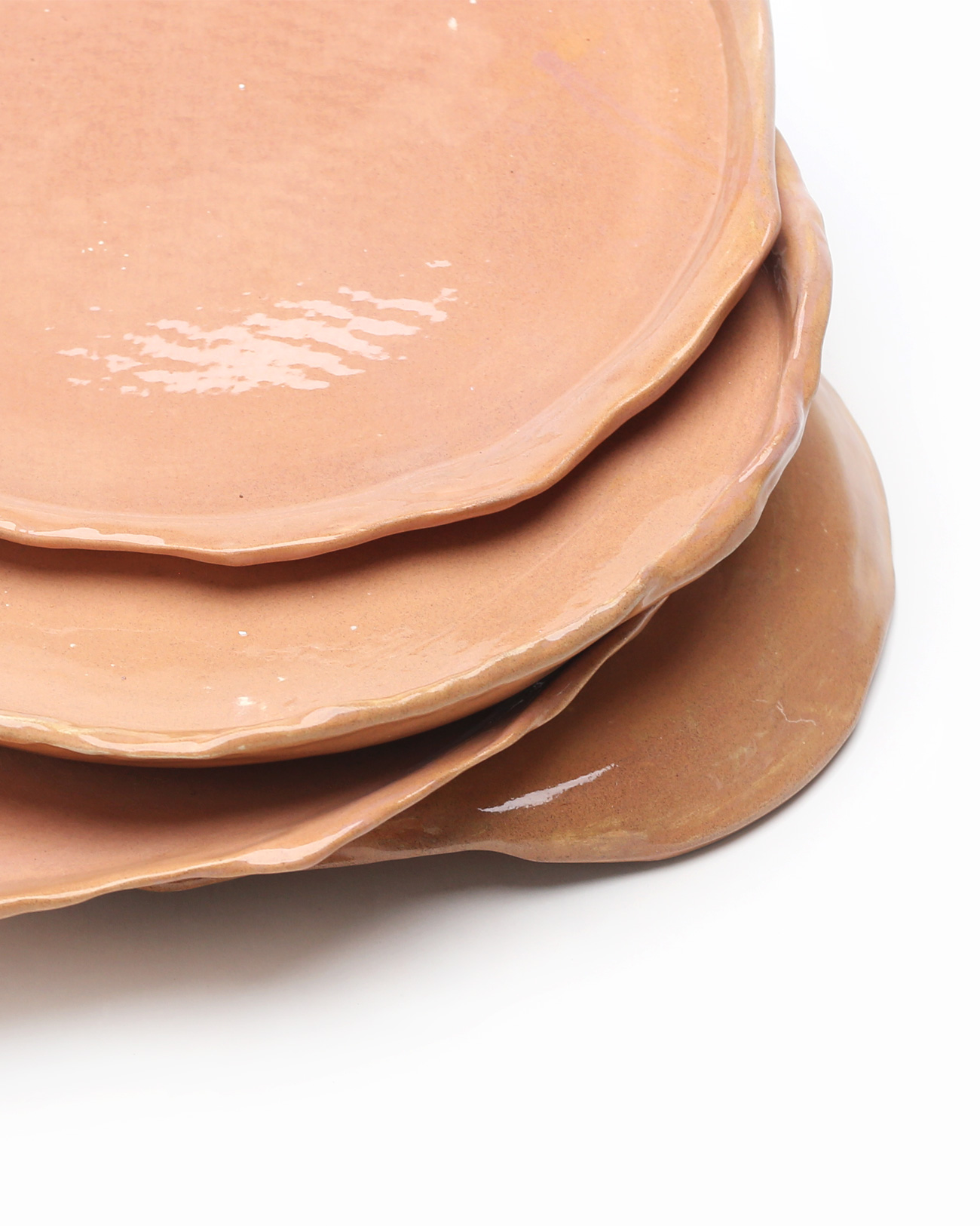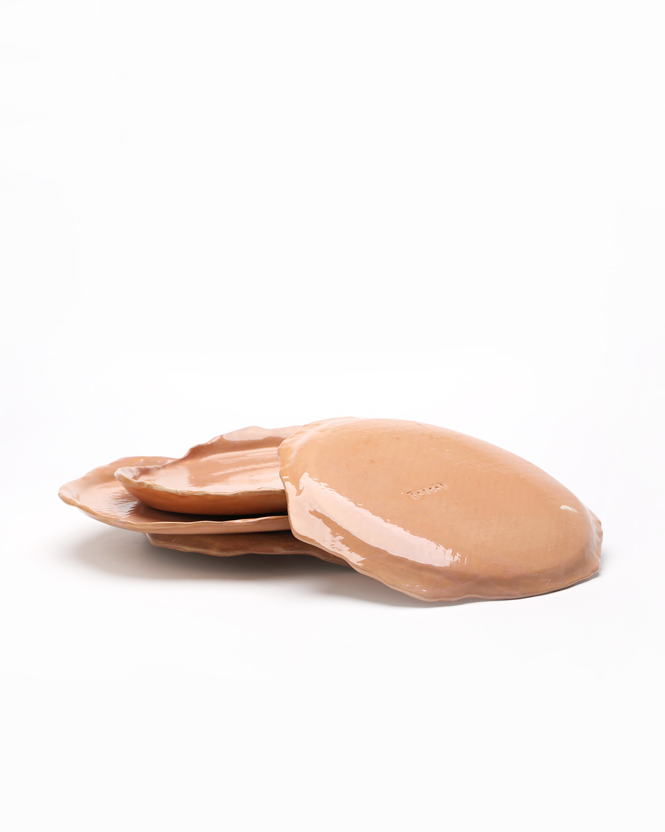 Set de 2 platos planos abstractos, color salmón arena, pintado y texturizado a mano con acabado de esmalte vidriado.
