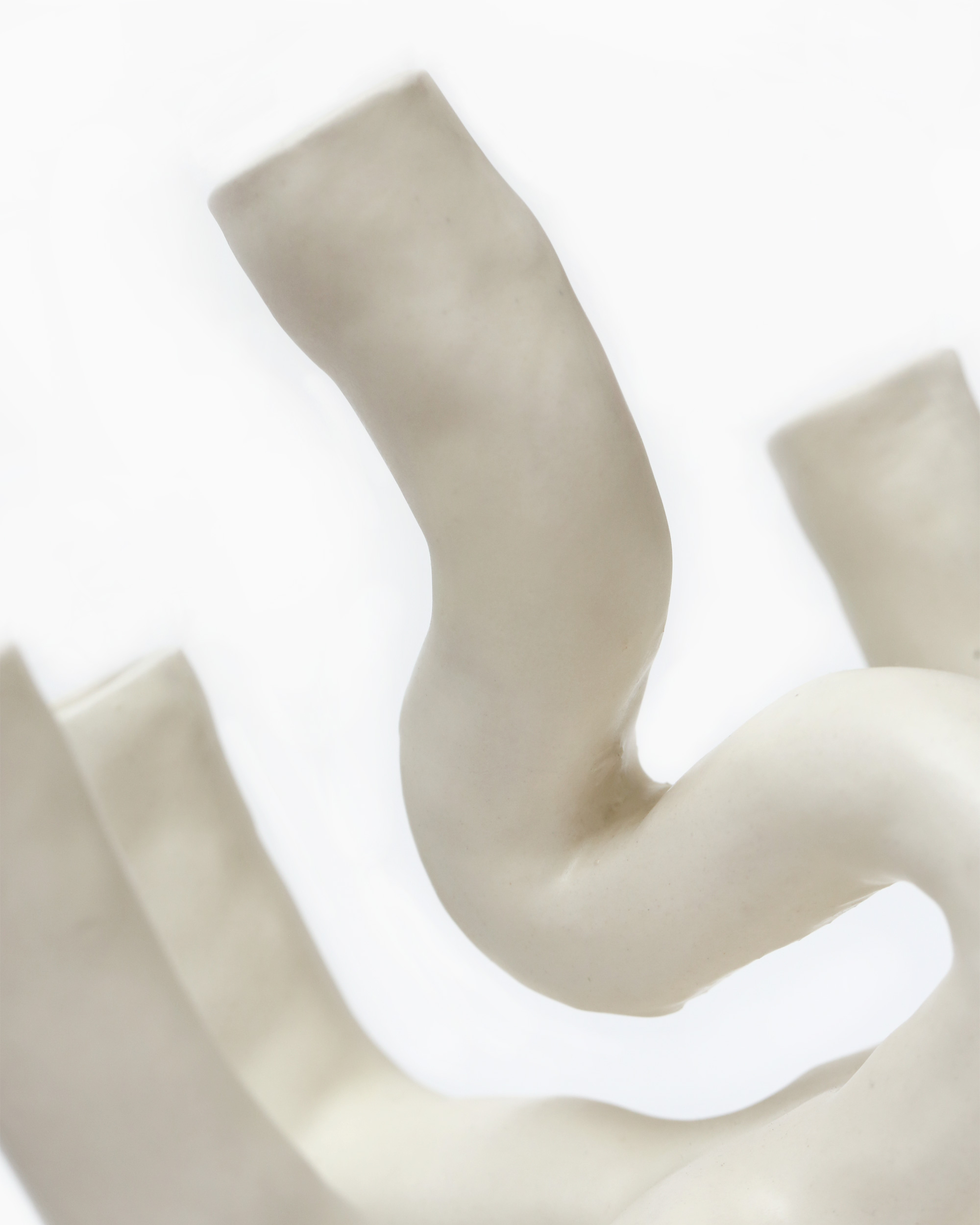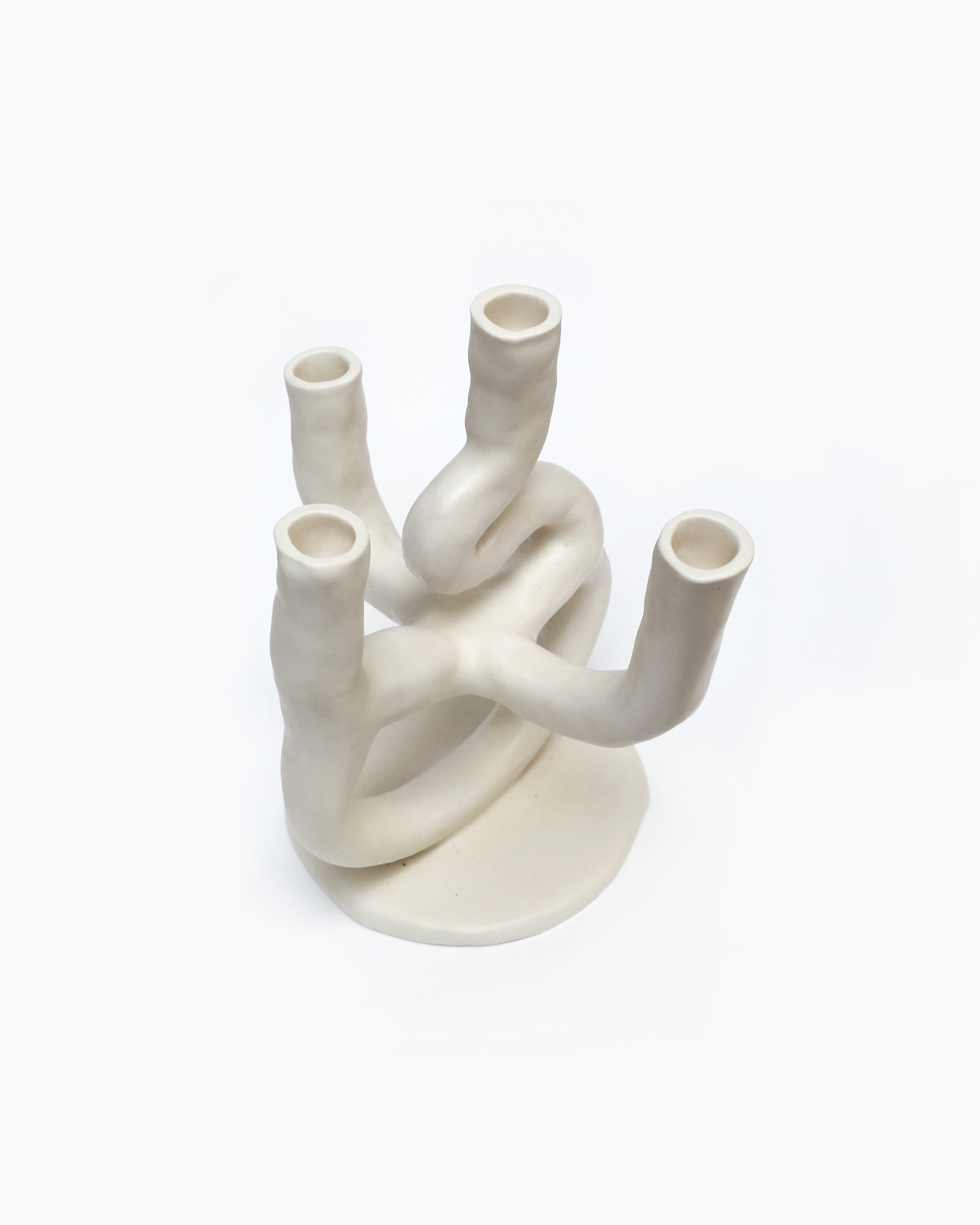 Candelabro abstracto, cerámica blanca con esmalte opaco en color mantequilla. Inspiración orgánica.